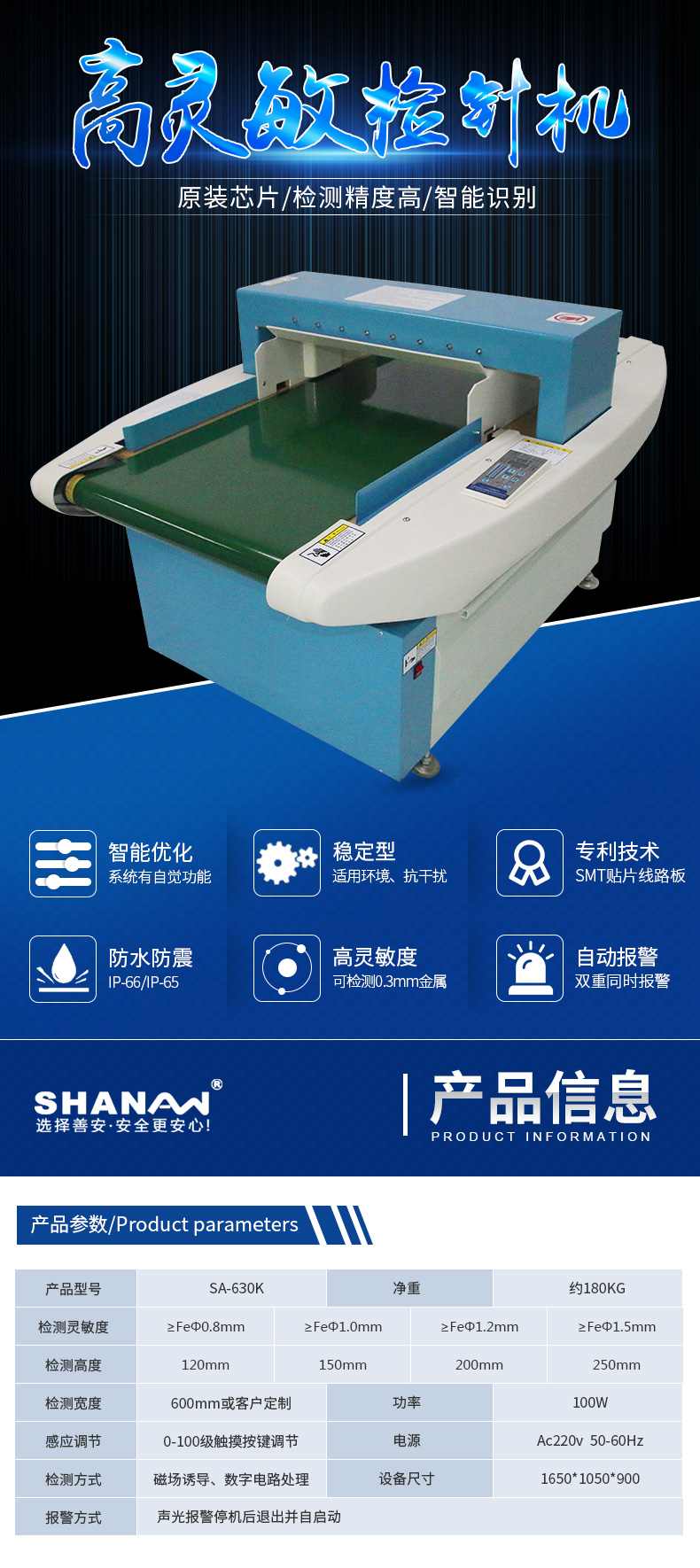 | 10 | 具有光控自动报警,检测到断针,声、光,双重同时报警,输送带停止并自动返回 |